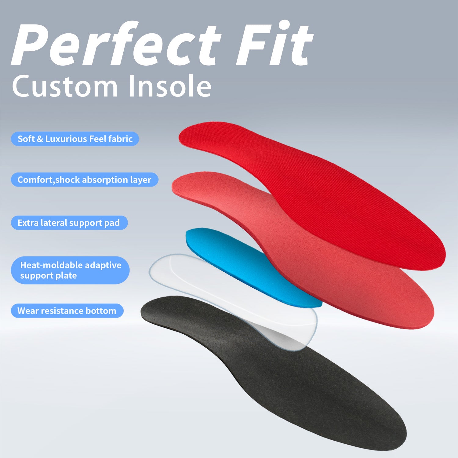 Molded Heel Platform: Heat-sets a stable, custom-shaped base for your heel to land securely.